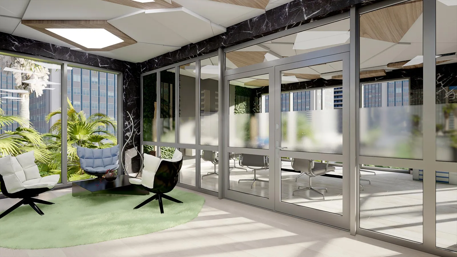 Głębokość kształtowników skrzydła i ościeżnicy wynosząca w obu tych elementach po 45 mm pozwala na uzyskanie zlicowanych powierzchni. Wąski profil nadaje konstrukcji wizualnej lekkości, co doskonale wpisuje się w obecne trendy w designu.