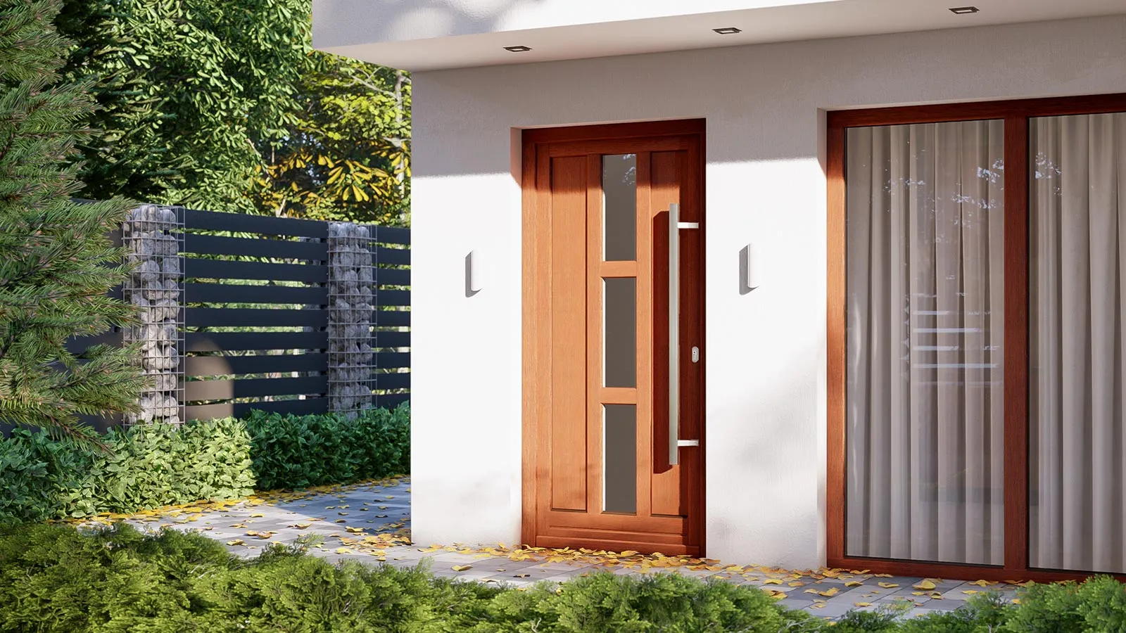 Drzwi drewniane wykonane z najwyższej jakości drewna, klejonego trójwarstwowo, o grubości 68 mm, które jest podstawą klasycznego wzornictwa, wysokiej trwałości i stabilności drzwi oraz najwyższej jakości wykonania. Drzwi drewniane zewnętrzne Drutex to jednak nie tylko elegancki design i wyrafinowany wygląd, ale również doskonała izolacja. W standardzie drzwi wyposażone są w próg aluminiowy z przekładką termiczną, co wpływa pozytywnie na parametr izolacji cieplnej całego systemu.