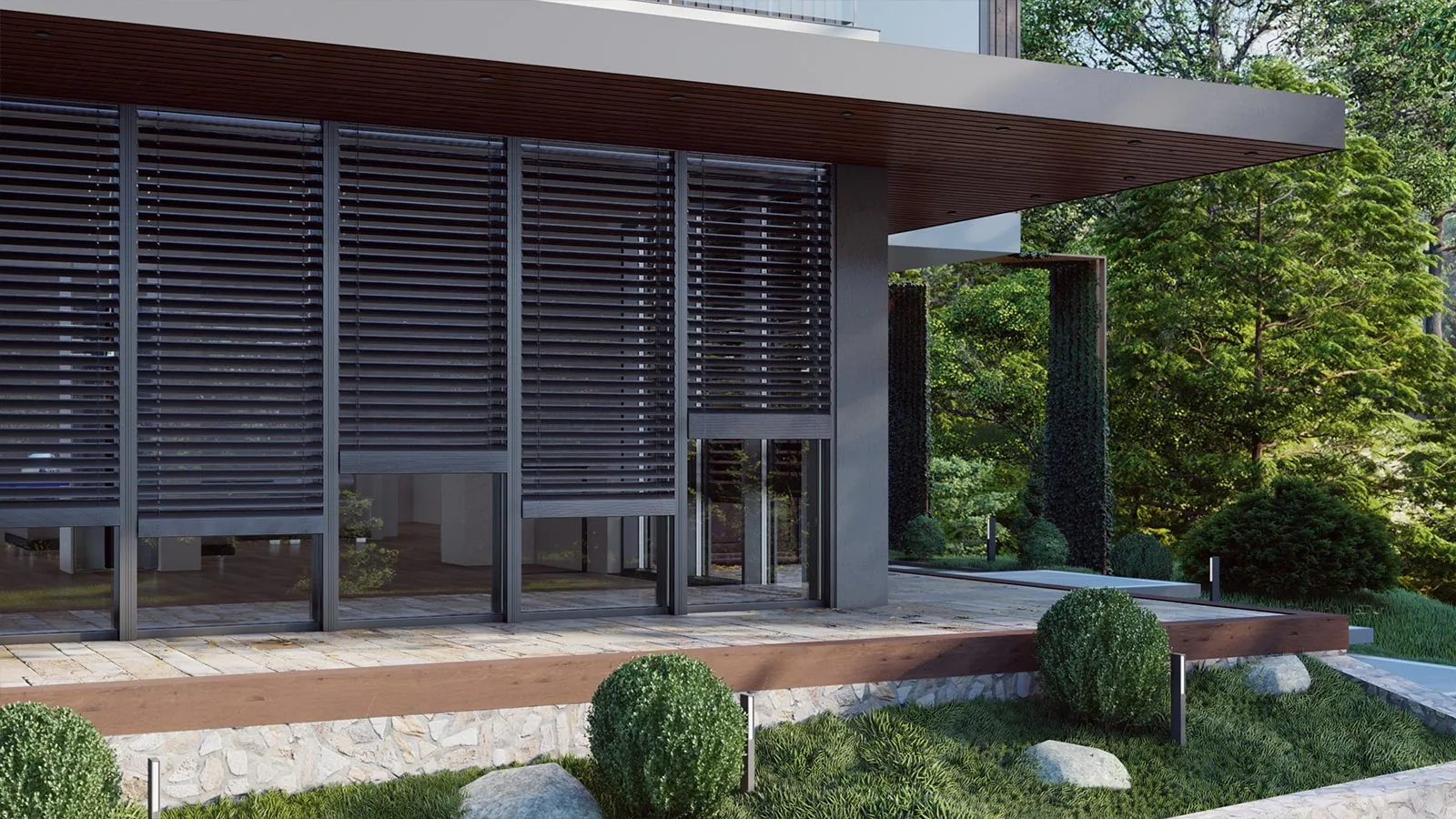 Żaluzje fasadowe Drutex są spójne ze współczesnymi trendami architektonicznymi preferującymi duże przeszklenia, w których zastosowanie innych niż fasadowe typów przesłon jest niemożliwe lub utrudnione.